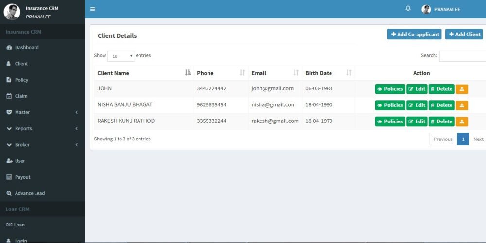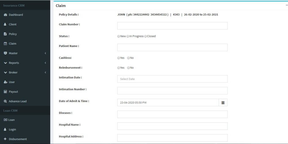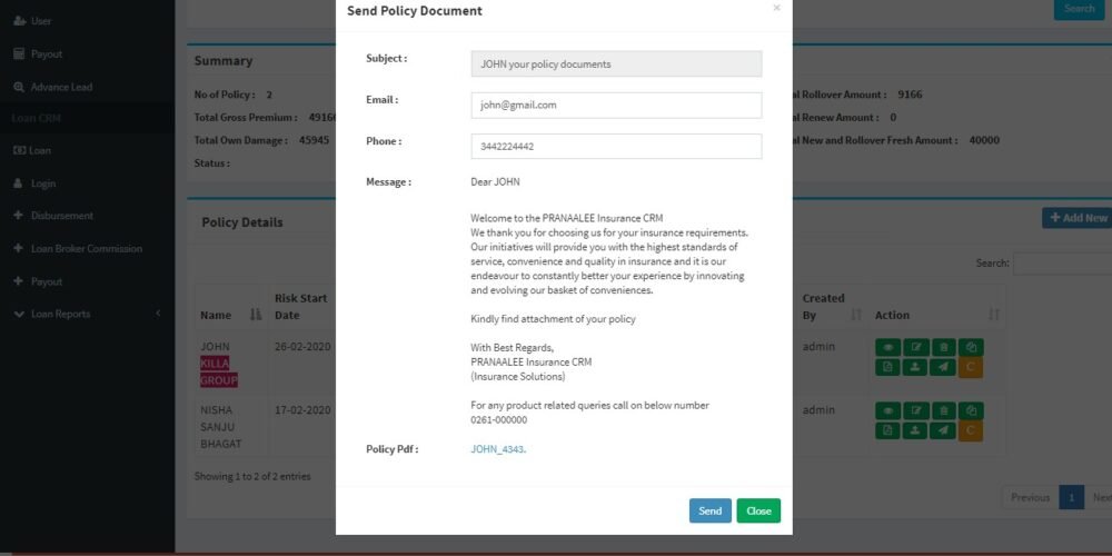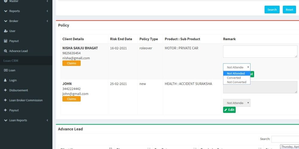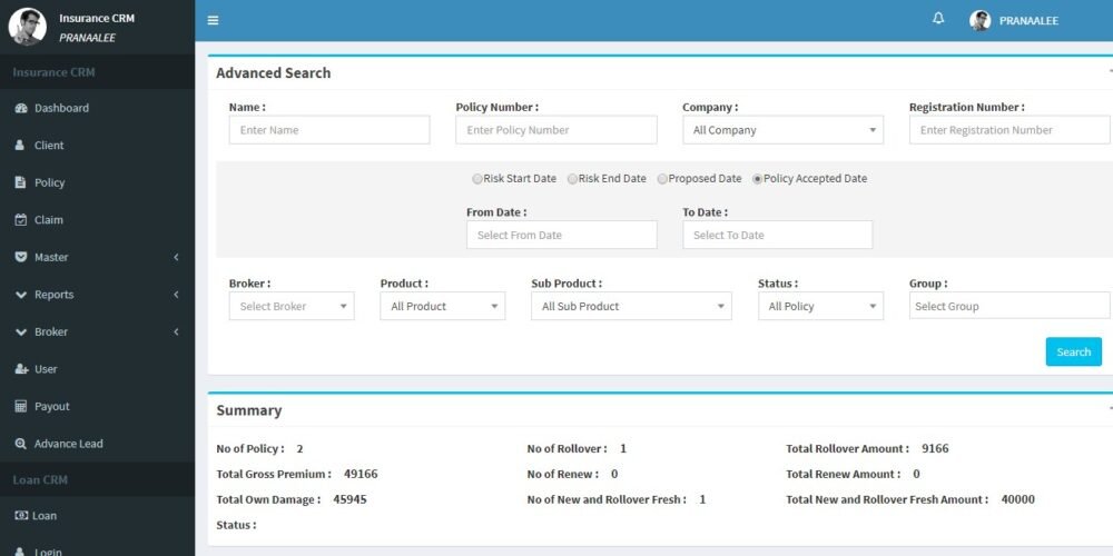 Loan CRM can be either used individually or in conjunction with insurance CRM(using common clients as cross business).