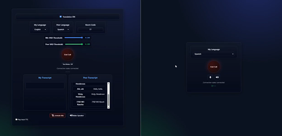 Python 3.10 | HTML | JavaScript | WebRTC | Open-Source models like Whisper (translation) | edge-tts (Voice to text)